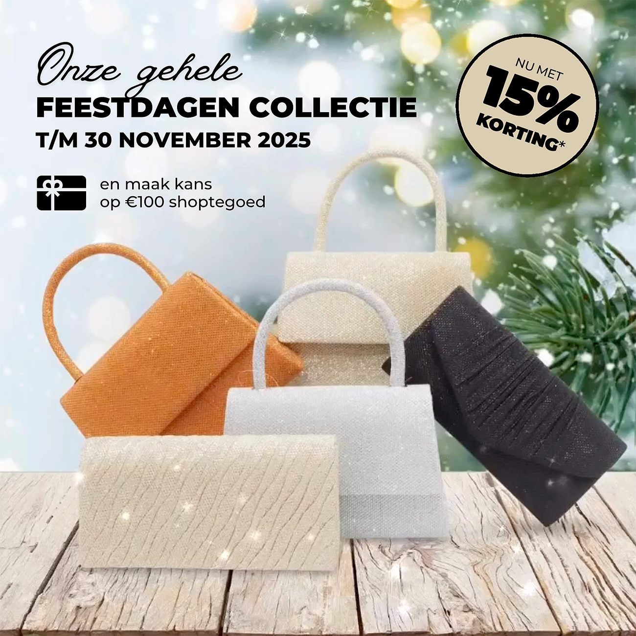 De hele maand november geven we je 15% korting op alle artikelen in onze feestdagen-collectie. Bovendien maak je met elke bestelling kans op €100 shoptegoed in onze gehele webshop. De winnaar maken we begin december bekend!